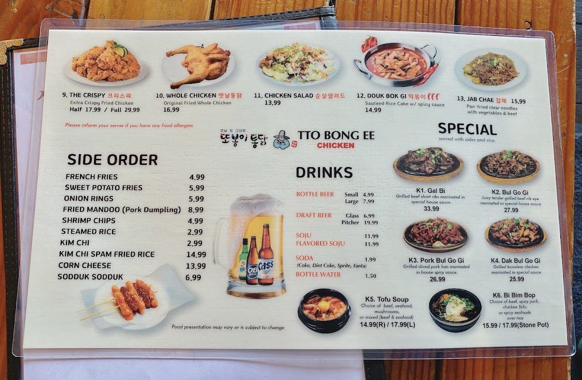 TTOBONGEE / KOREA HOUSE Menu